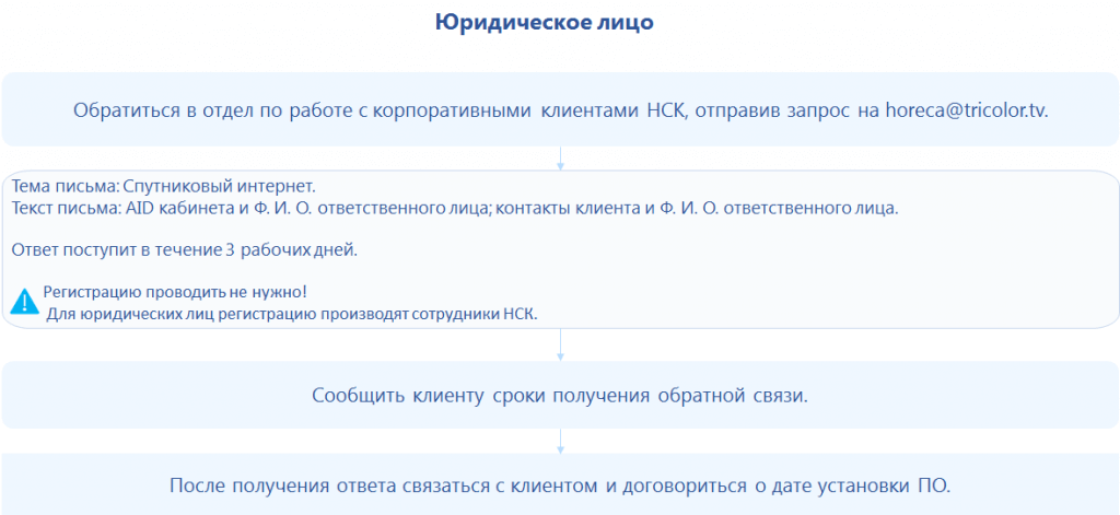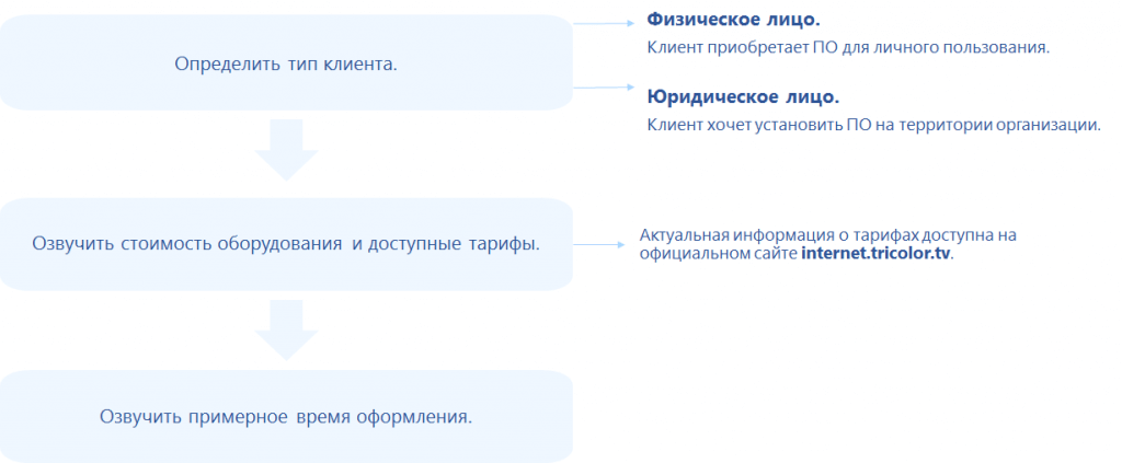 Порядок действий при готовности клиента приобрести комплект оборудования для использования услуги спутникового интернета |