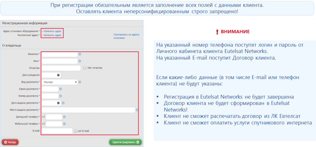 Правила регистрации клиента в Личном кабинете дилера Триколора |