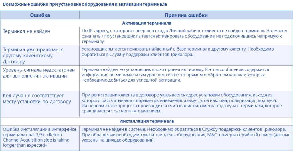 Возможные ошибки при установке оборудования и активации терминала |