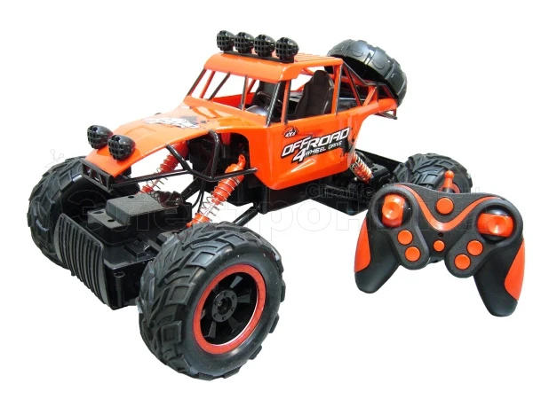 Большой дорожный просвет, это возможность преодолевать высокие препятствия. 2 двигателя (передний и задний мосты), 4 ведущих колеса обеспечивают высокую проходимость. Колёса большого диаметра и очень эластичные (резиновые), это отличное сцепление с дорогой. Крепкая и надёжная подпружиненная подвеска всех колёс, это длительный срок эксплуатации. Система подвески мостов позволяет передней и задней осям независимо поворачиваться относительно корпуса, это повышает возможность преодолевать преграды. Устойчивость на дороге за счёт широкой базы между колёсами и низкого центра тяжести. Время игры – до 20 мин. Светодиодная индикация передних фар Звук работающего мотора (не отключается) Питание: машина - Аккумулятор 7.2 В, 700 мА·ч, Пульт - 2 х АА (1.5 В) - в комплекте Аккумулятор заряжается от USB - шнур ЗУ в комплекте Частота: 2.4 MHz Размер: длина 33см , высота 20см, ширина колёсной базы 24см Возраст: 8+