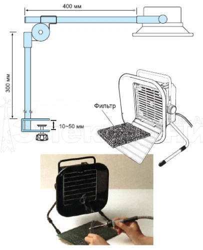 Мощный настольный поглотитель паяльного дыма. Высокопроизводительный вентилятор для эффективного поглощения вредных газообразных веществ. Фильтр, образованный путем соединения специальной уретановой пены с очищенным активированным углем, имеющим высокую поглощающую способность. Полностью настраиваемый угол установки прибора. Вы можете установить такой угол, который обеспечивает наилучшее поглощение дыма. Легкая и быстрая замена фильтра. Потребляемая мощность 14-16 Вт (50 Гц) Питание 220В Внешние габариты (ширина, высота, глубина) 220 x 270 x 168 мм Вес 1500 г