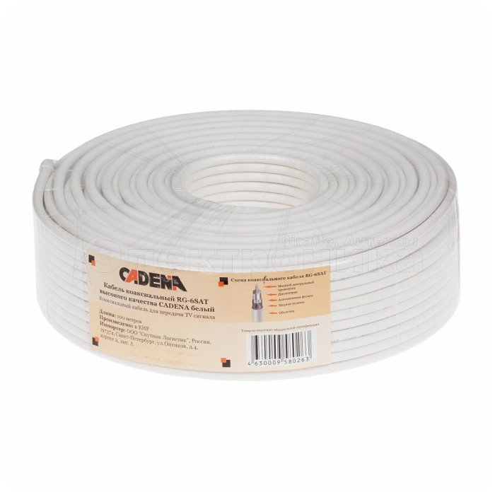 Кабель RG-6 Cadena Sat-Digital TV, коаксиальный RG-6U высокого качества CADENA белый 6U-white