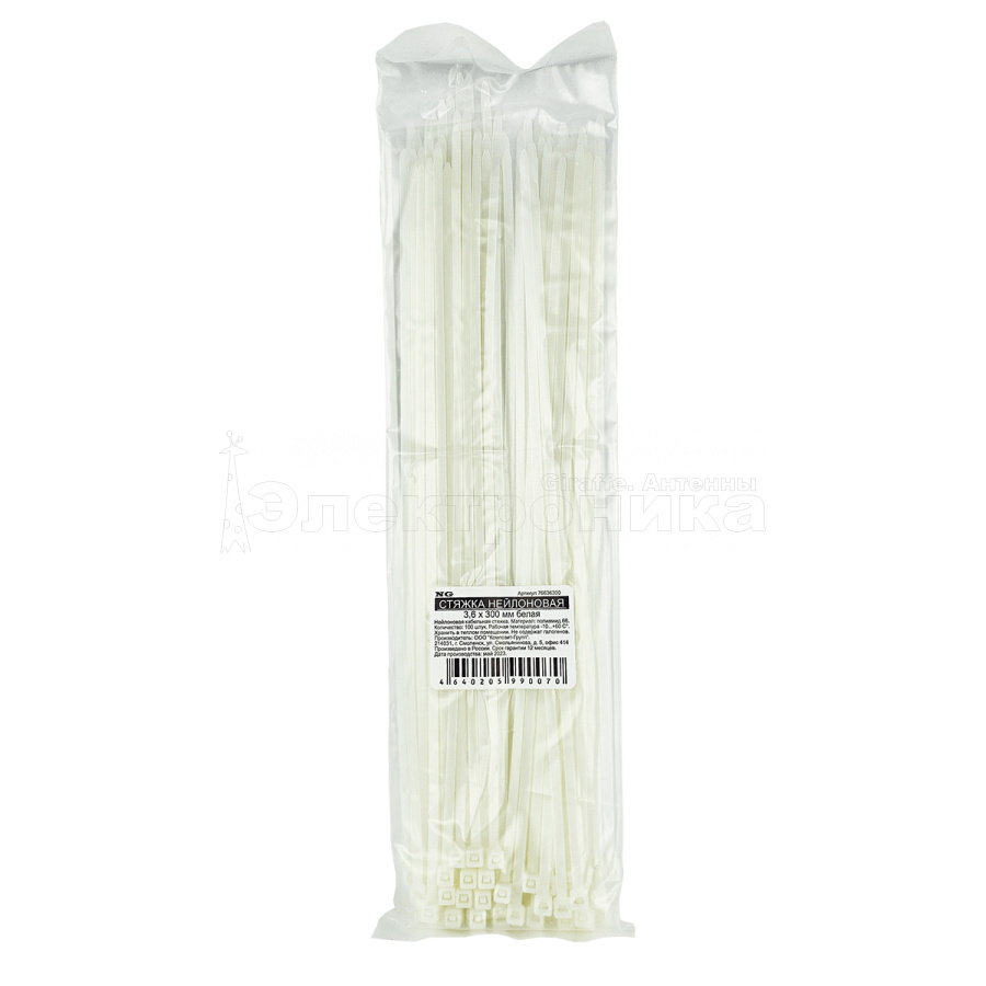 Стяжка нейлоновая. 3,6*300 мм NG белая (упаковка 100 шт) хомут пластиковый, стяжка кабельная